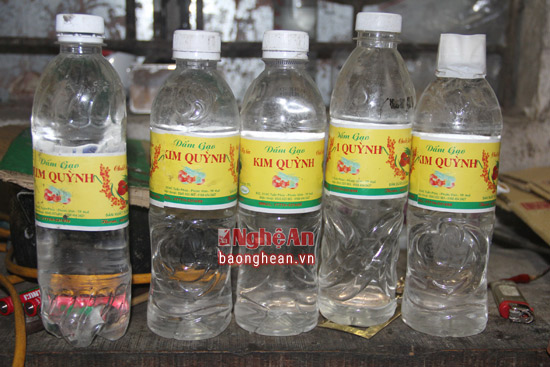 | Dấm gạo mang nhãn mác Kim Quỳnh được chế biến bằng công thức acid + nước lã. |