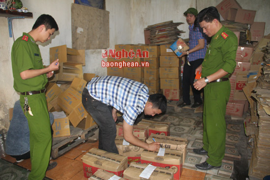 Lực lượng công an chức năng kiểm soát và phát hiện trên xe vận chuyển 30 thùng dán nhãn mác là dấm gạo Kim Quỳnh. Chủ xe là Lê Văn Thanh (trú khối 11, phường Hà Huy Tập, TP Vinh) không xuất trình được giấy tờ chứng minh được nguồn gốc xuất xứ. Anh Thanh khai mua số hàng này của một người phụ nữ tên là Nguyễn Thị Kim.